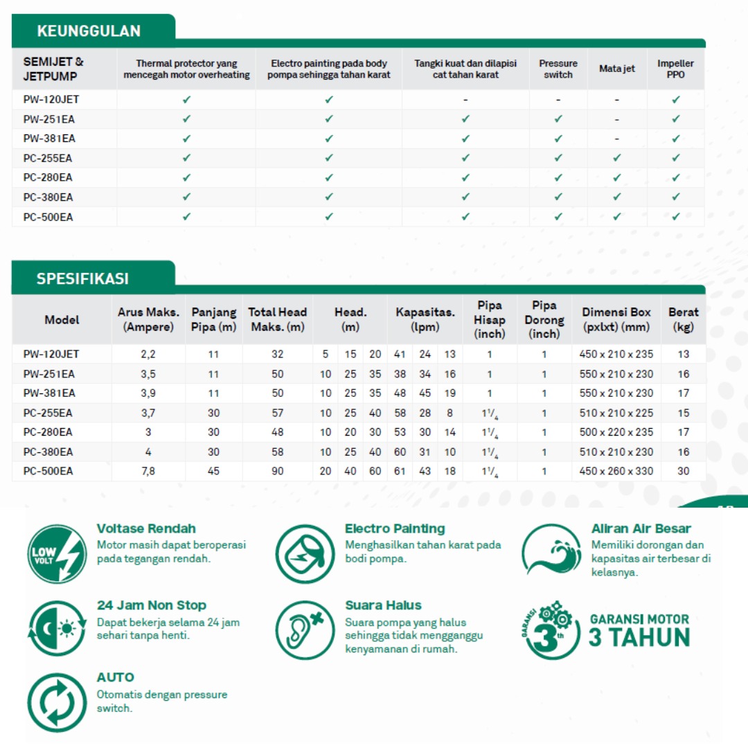 Dilengkapi sistem otomatis dan fitur perlindungan canggih, WASSER PC-255EA/WT menghadirkan kenyamanan serta ketenangan dalam setiap penggunaan air di rumah Anda.