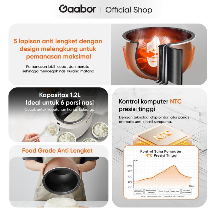 Masak jadi lebih praktis dengan Gaabor Rice Cooker RC-30T01A, penanak nasi digital modern yang dirancang untuk keluarga masa kini. Menggunakan teknologi pintar, rice cooker ini mampu memasak nasi, bubur, sup, hingga kue dengan hasil yang lebih merata dan konsisten setiap hari.