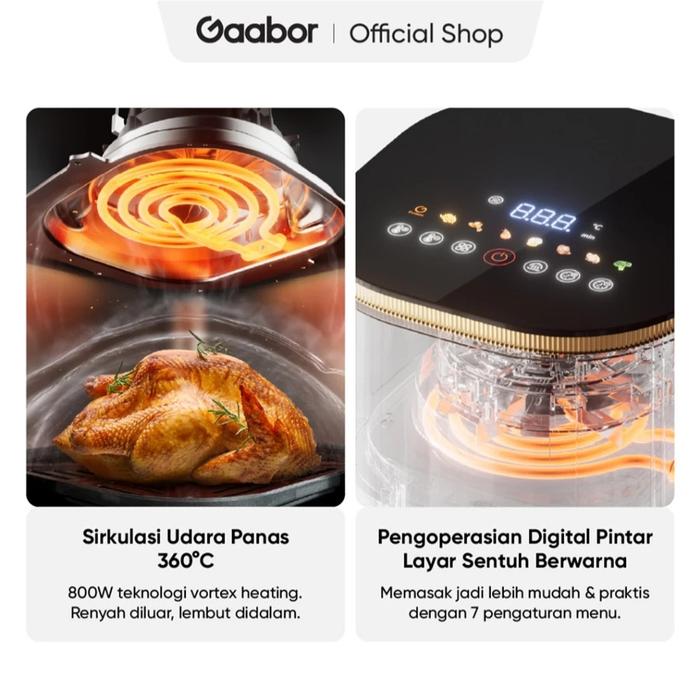 Nikmati pengalaman memasak lebih sehat dan modern dengan Gaabor AF-45T01A, air fryer low watt berkapasitas besar 4.5 liter yang dilengkapi layar sentuh digital dan jendela kaca transparan untuk memantau proses memasak tanpa perlu membuka keranjang.