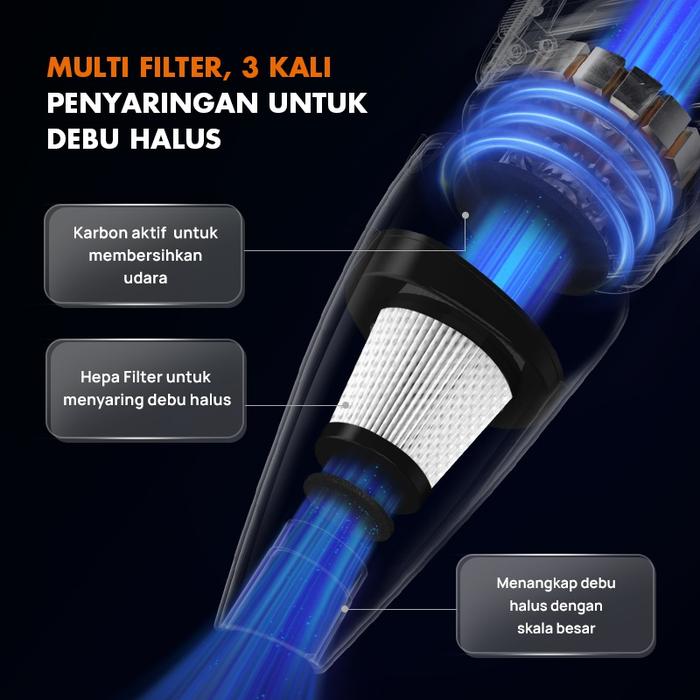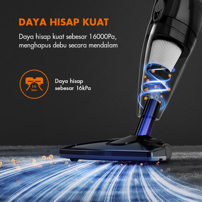 Pembersih debu berdaya hisap kuat yang cocok digunakan di rumah, kantor, maupun ruang pribadi. Dengan kekuatan hisap 16000Pa, vacuum ini mampu menyedot debu halus hingga ke celah kecil. Hadiah yang tepat untuk keluarga, teman, maupun pasangan.