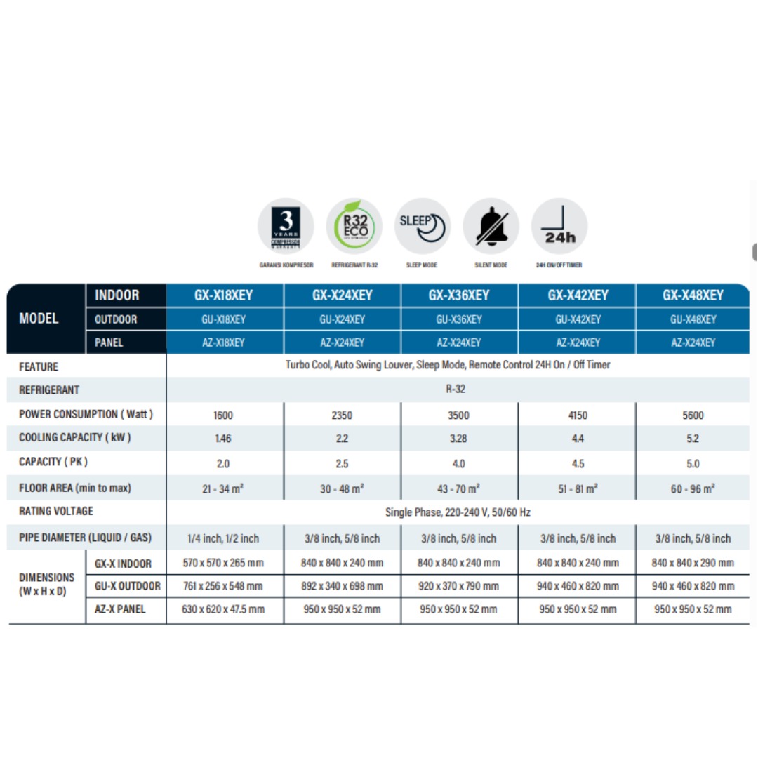 AC SHARP Cassette Inverter Series XEY Series dirancang untuk memberikan pendinginan optimal pada area komersial dengan tampilan plafon yang rapi dan modern. Sistem cassette memungkinkan distribusi udara merata ke seluruh ruangan, sehingga suhu lebih cepat dingin dan tetap nyaman.
