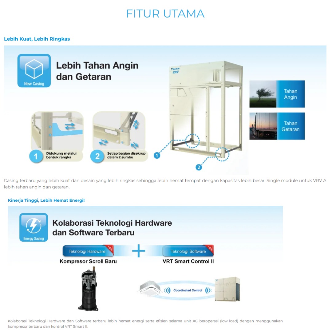 Unit ini sangat cocok digunakan untuk gedung besar, proyek komersial, dan fasilitas umum. Desain casing terbaru yang lebih kuat dan ringkas memungkinkan penghematan ruang, sekaligus memberikan ketahanan lebih baik terhadap angin dan getaran.