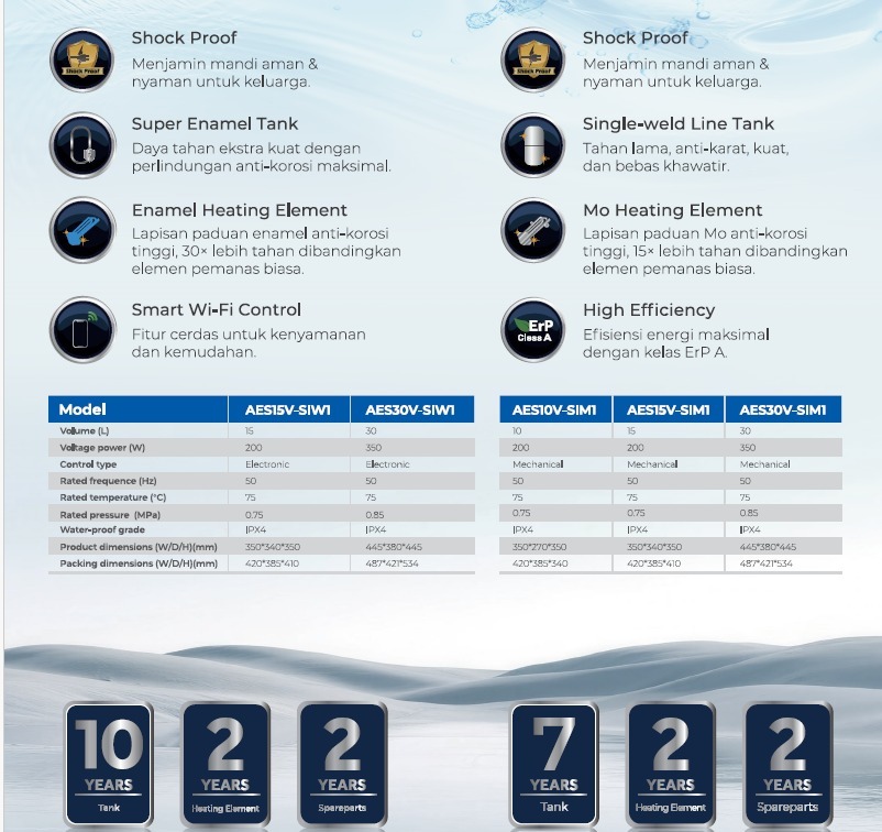 Dilengkapi fitur Shock Proof, sistem perlindungan ganda, serta material tangki berkualitas tinggi, AQUA Nova Series memastikan keamanan dan daya tahan jangka panjang. Beberapa varian juga didukung Smart Wi-Fi Control untuk kemudahan pengaturan langsung dari genggaman.