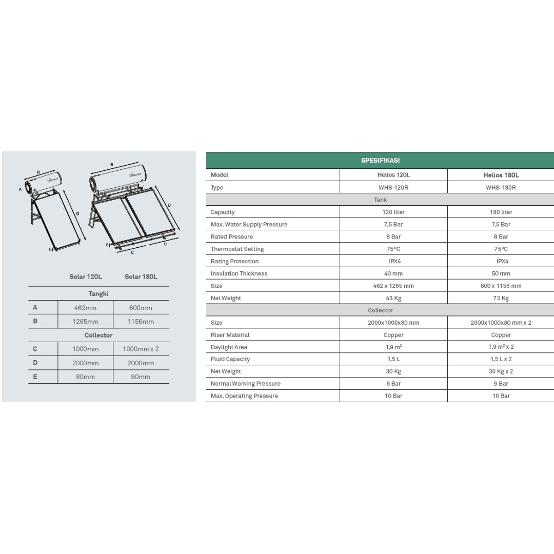 Wasser Helios dirancang sebagai solusi water heater central bertenaga surya bagi pemilik rumah atau villa yang ingin mengadopsi renewable energy yang ramah lingkungan. Dengan memanfaatkan energi matahari, produk ini membantu menekan biaya operasional tanpa mengurangi kenyamanan penggunaan air panas sehari-hari.