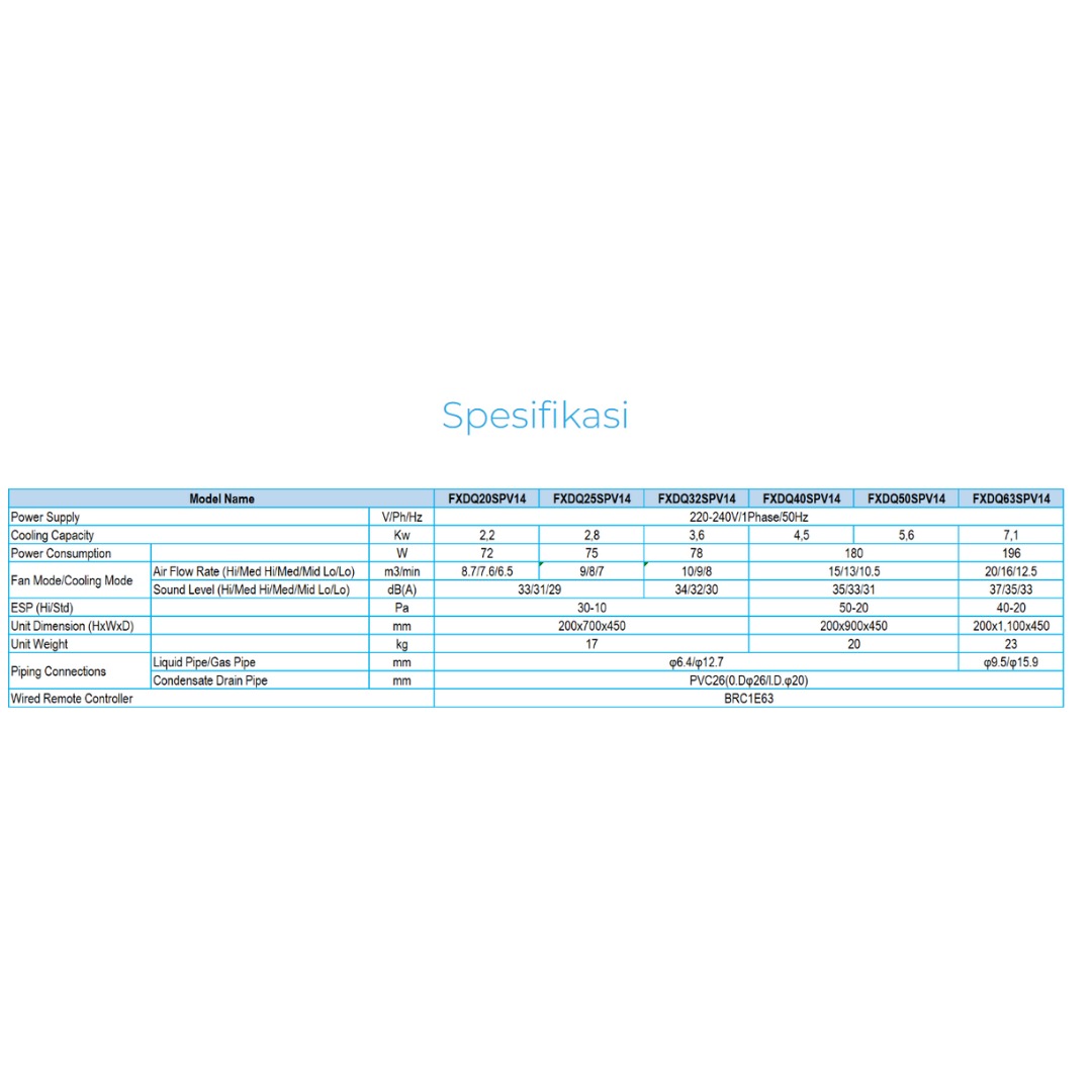Desain Compact Ceiling Mounted Duct memungkinkan instalasi yang lebih fleksibel, baik untuk koneksi saluran pendek maupun pelepasan kisi-kisi udara. Tampilan tetap rapi dan minimalis, sementara distribusi udara tetap optimal untuk kenyamanan ruangan.