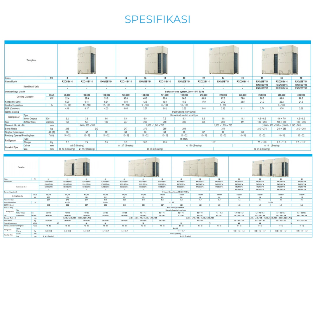 AC Daikin VRV 6A Series merupakan generasi terbaru sistem VRV dengan performa luar biasa, struktur yang lebih andal, desain lebih ringkas, serta efisiensi energi yang semakin optimal. Dibekali peningkatan teknologi dan fungsi yang lebih fleksibel, VRV 6A dirancang untuk kemudahan pemasangan dan keandalan operasional jangka panjang.