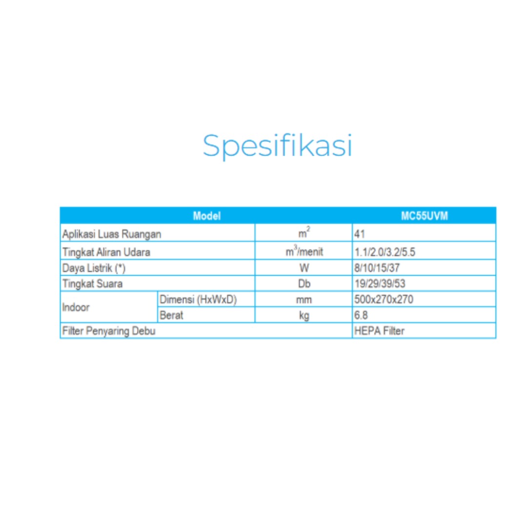 Dilengkapi filter deodorization, MC55UVM efektif menyaring bau dan gas berbahaya yang sering muncul di dalam rumah, terutama pada hunian dengan konsep ruang terbuka. Fitur Mode Econo dan Mode Auto memungkinkan pengoperasian yang efisien dan otomatis sesuai kualitas udara yang terdeteksi. Tambahan Kunci Pengaman Anak memberikan keamanan ekstra untuk penggunaan sehari-hari.