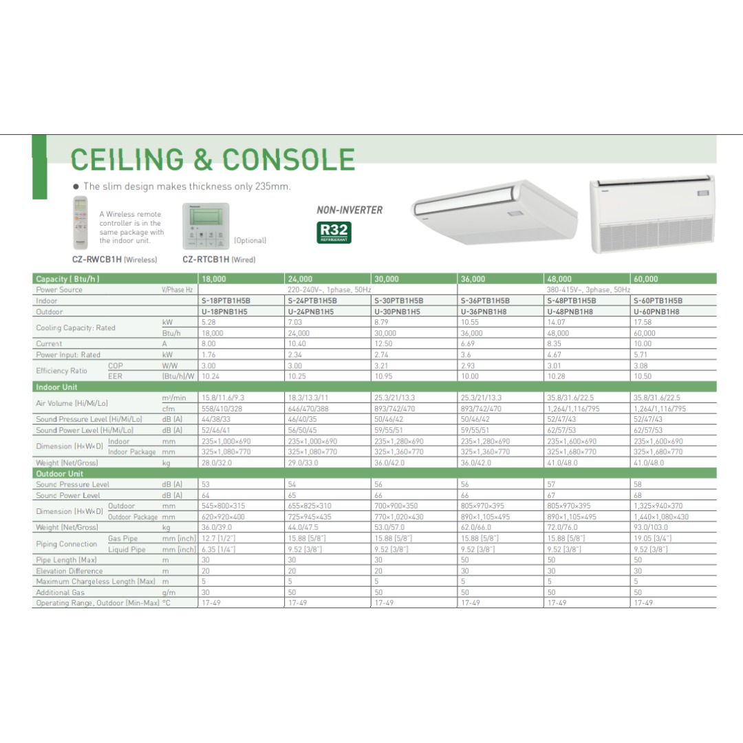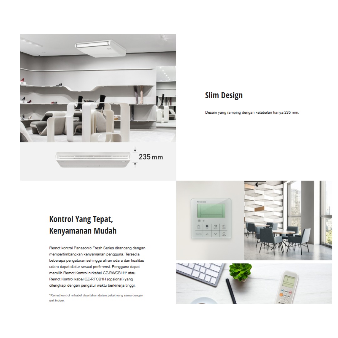 AC Panasonic Ceiling & Console Fresh Series Non Inverter R32 dirancang sebagai solusi pendingin fleksibel untuk berbagai kebutuhan ruang komersial dan semi-komersial. Dengan dua opsi pemasangan (ceiling atau console/lantai), unit ini cocok digunakan pada ruangan dengan keterbatasan desain atau kebutuhan instalasi khusus.