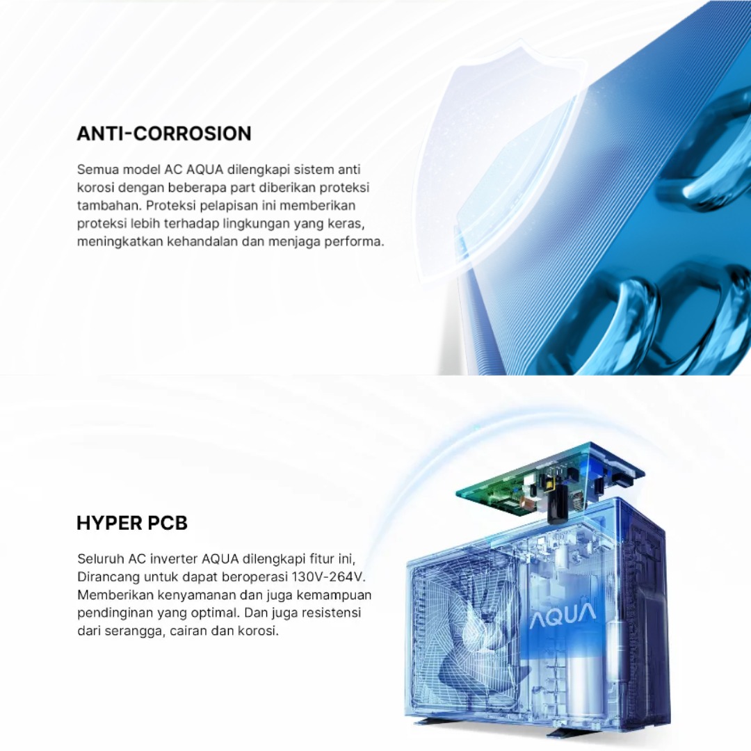 Dilengkapi sistem filtrasi yang membantu menyaring debu dan partikel di udara, AQUA Clean Cool mendukung lingkungan ruangan yang lebih sehat dan nyaman untuk beraktivitas maupun beristirahat. Performa pendinginannya bekerja optimal dengan konsumsi listrik yang efisien, cocok untuk kebutuhan rumah tinggal maupun ruang kerja.