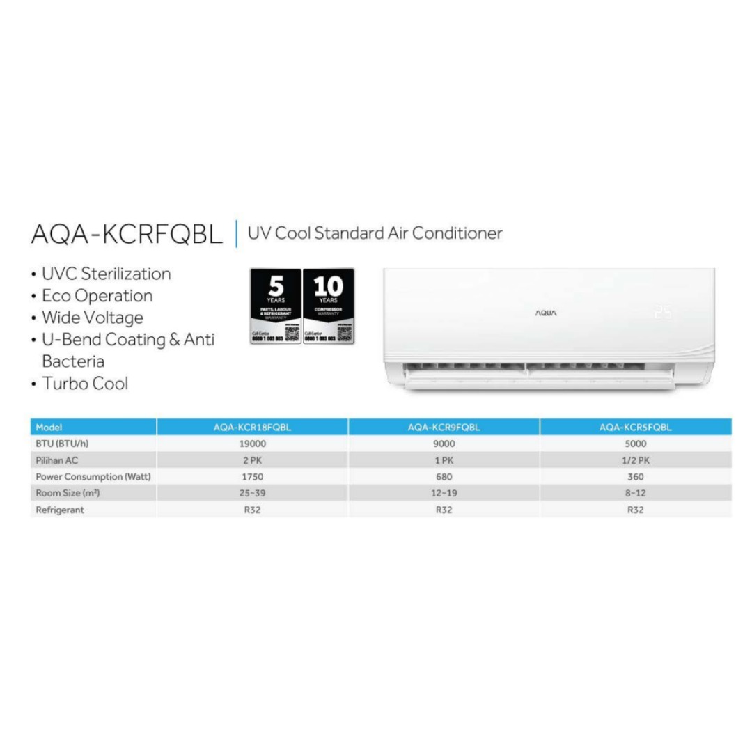 AQUA UV Cool Standard Air Conditioner AQA-KCRFQBL dirancang untuk memberikan kesejukan optimal sekaligus menjaga kebersihan udara di dalam ruangan. Teknologi UV Cool membantu menghambat pertumbuhan bakteri dan menjaga aliran udara tetap bersih, sehingga ruangan terasa lebih sehat dan nyaman.