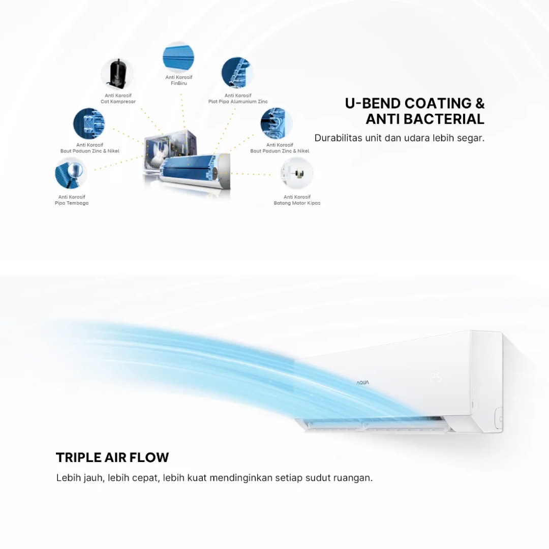 Dengan desain modern dan minimalis, AQUA AQA-KCRFQAL cocok digunakan untuk rumah tinggal, apartemen, maupun ruang kerja. Pilihan tepat bagi Anda yang menginginkan AC standar dengan performa cepat, handal, dan tahan lama.
